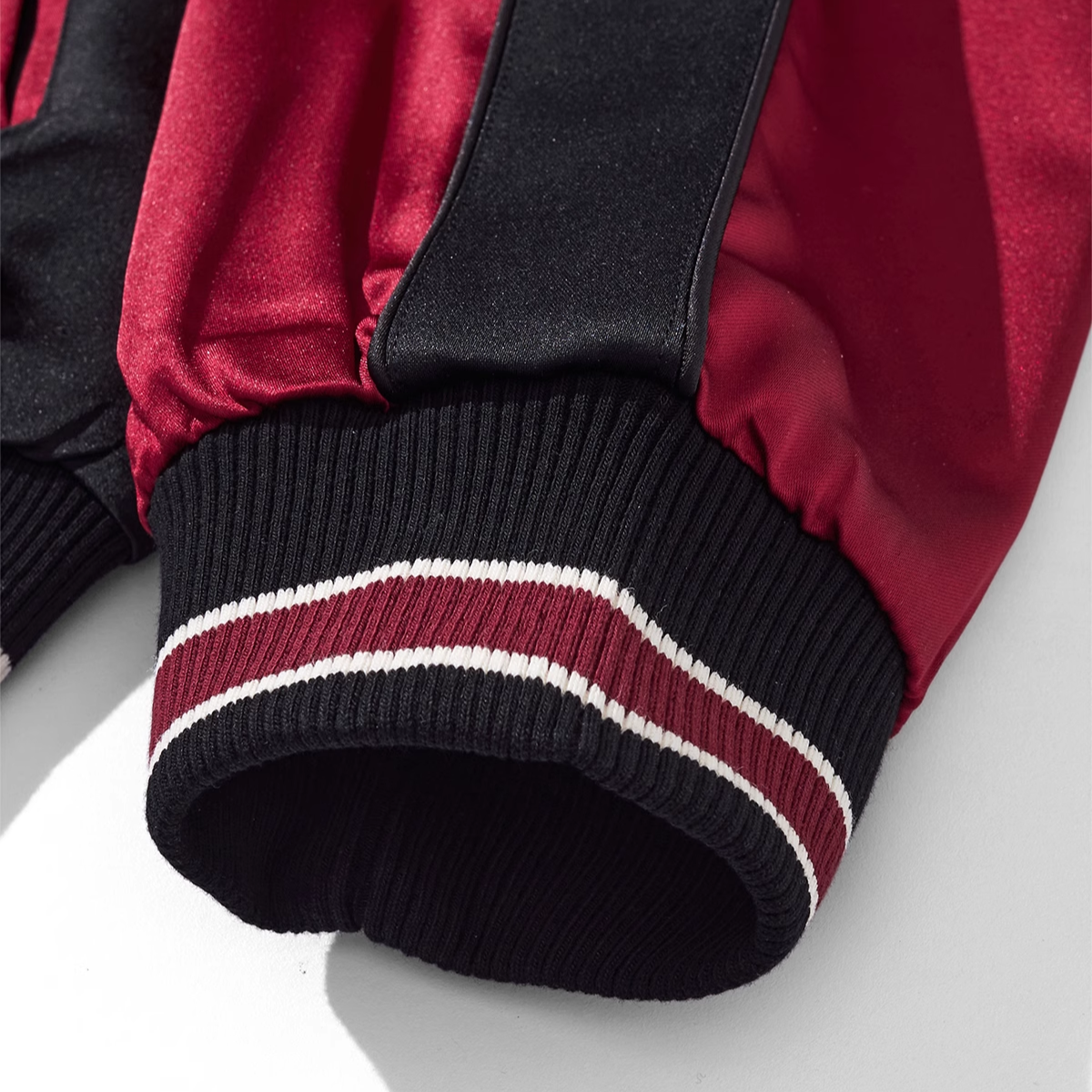 Available in two distinct moods — Crimson Red, embodying passion and energy, or Deep Blue, evoking serenity and balance. Each jacket is crafted in premium satin with bold contrasting sleeves, balancing delicate floral embroidery with sharp street-ready edge.