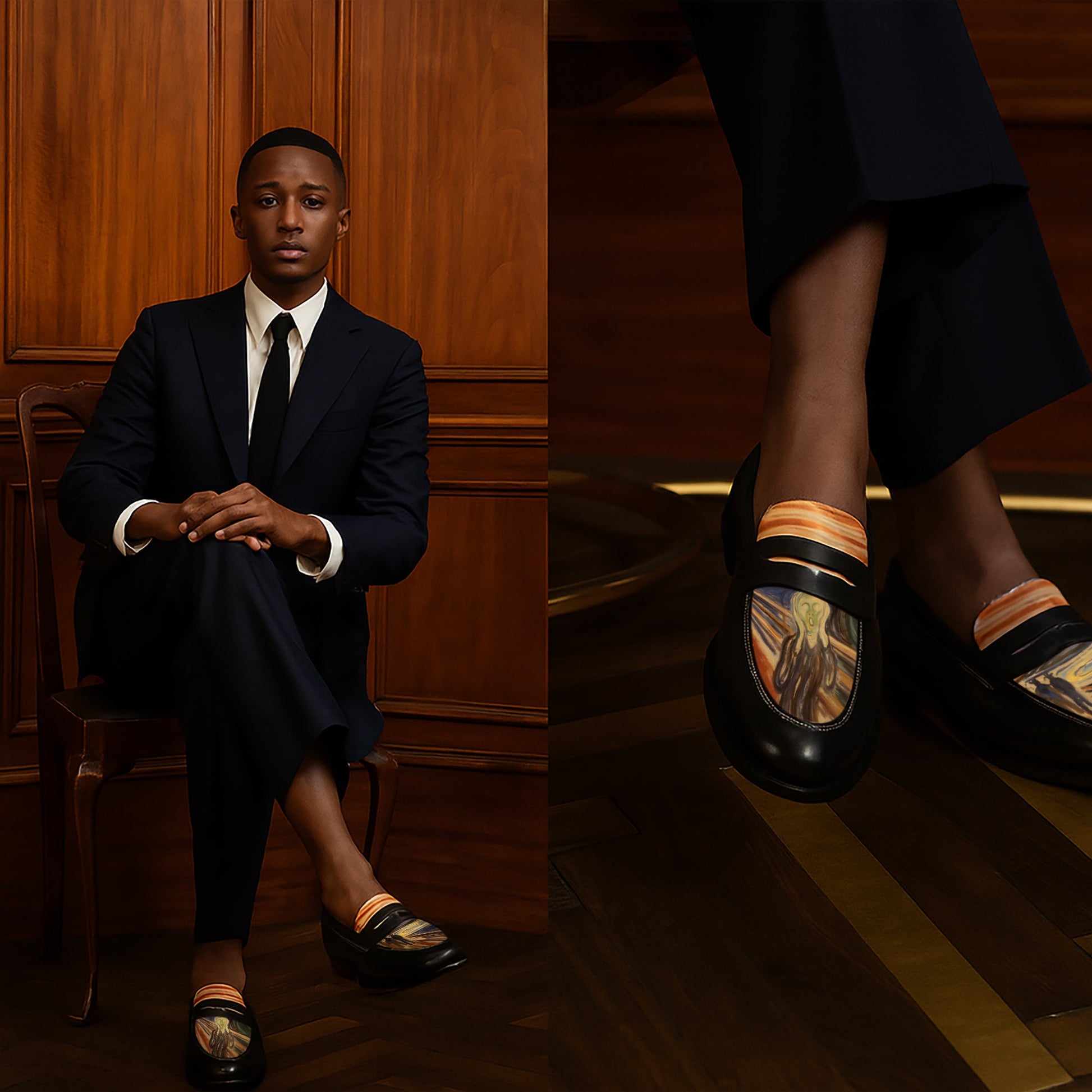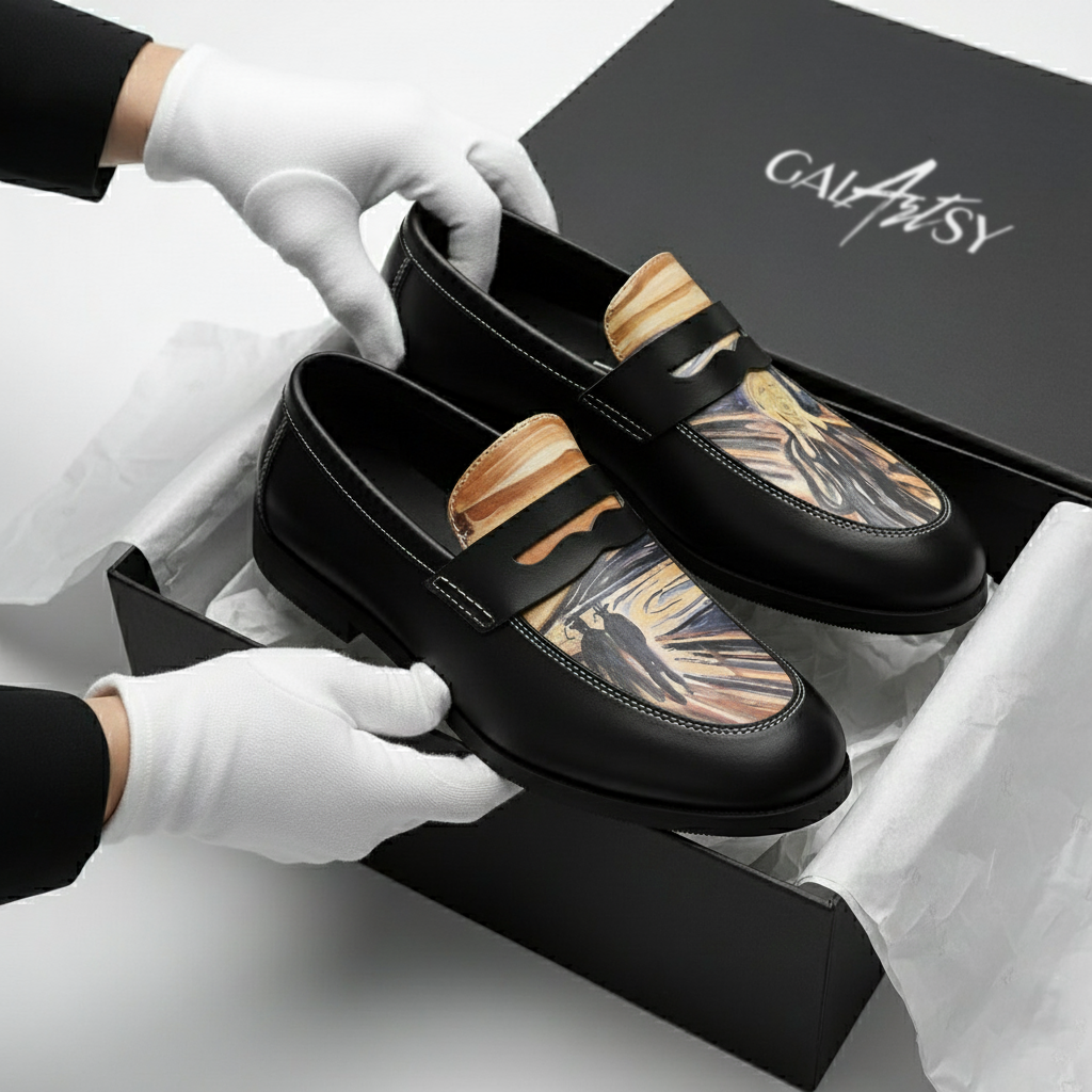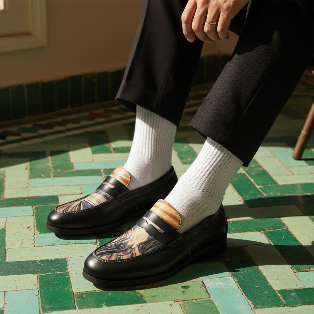 Drawing inspiration from Edvard Munch’s iconic The Scream, these loafers embody a bold fusion of raw emotion and refined sophistication.
